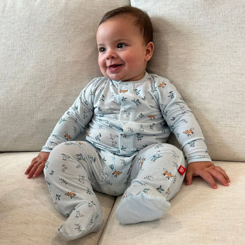 Pajamas, onesies, and outerwear with magnetic closures that connect quickly